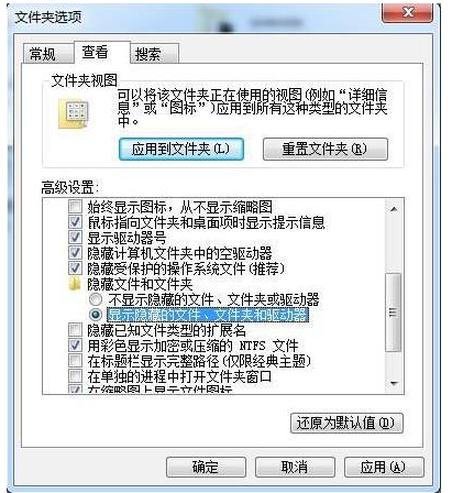 方法一:打開文件夾選項,把隱藏項打上鉤,