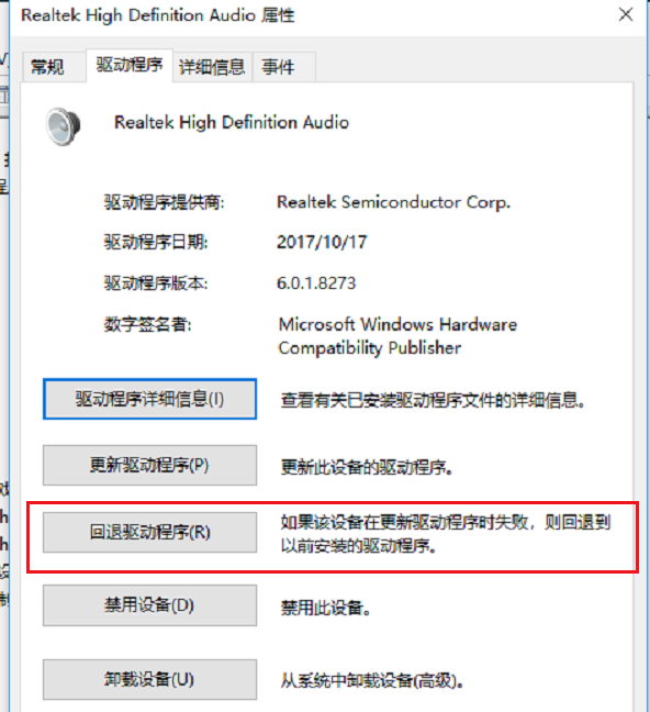 進去驅動程序之后,點擊回退驅動程序,如下圖所示: