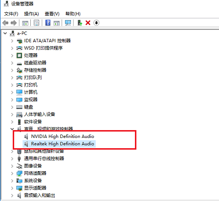 打開設備管理器之后,點擊聲音、視頻和游戲控制器,可以看到里面的驅動,如下圖所示: