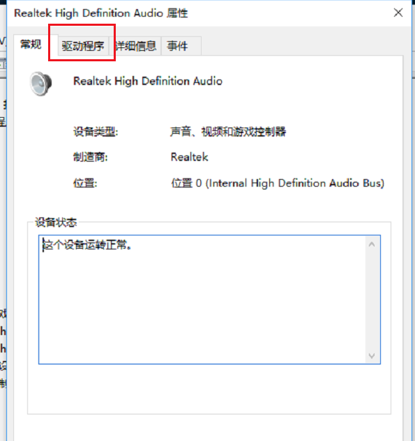 如果里面只有一個聲卡驅動,操作一次就可以;如果有多個驅動需要全部還原成升級前的驅動,選中驅動High Definition Audio,右鍵屬性,進去之后,點擊驅動程序,如下圖所示: