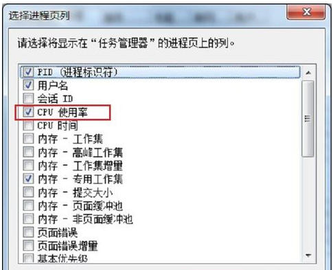 進去之后,勾選“CPU使用率”,如下圖所示: