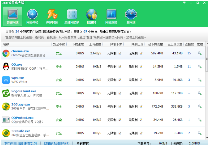 根據以上步驟操作,我們就可以使用360安全衛士進行電腦流量監控了。