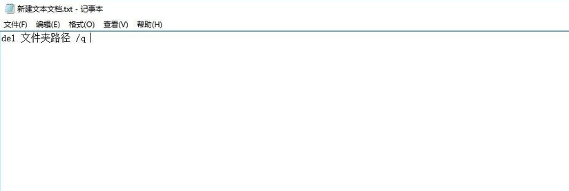 在打開的記事本中輸入:del 文件夾路徑 /q, 左鍵點擊“文件”,在下拉菜單中點擊另存為;