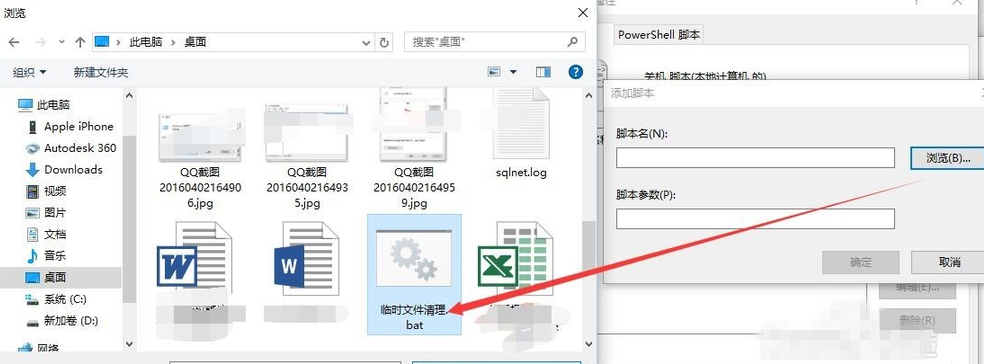 方法二:把臨時文件清理.bat文件添加到腳本關機文件中。