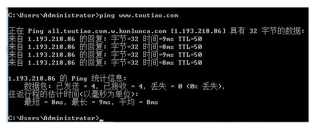 第四步,ping 網(wǎng)址