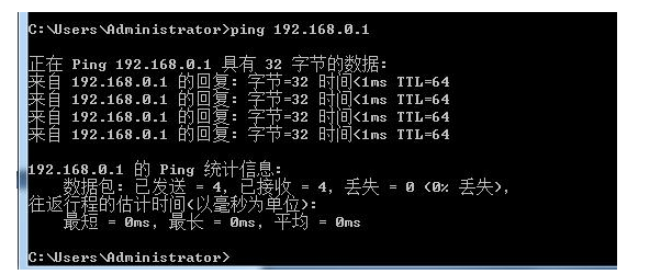 接下來(lái),我們就來(lái)ping一下這個(gè)網(wǎng)關(guān)。ping 192.168.0.1