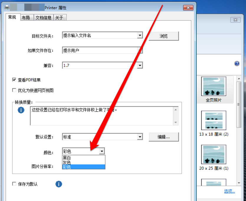 7、在打印機屬性頁面,點擊顏色按鈕。