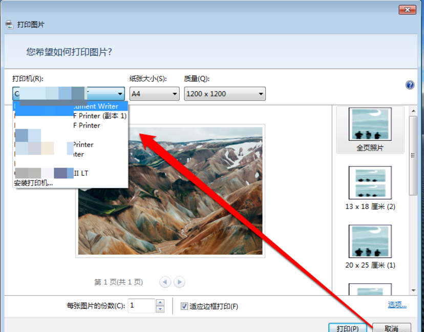 3、點擊打印功能,進入打印頁面選擇打印機。