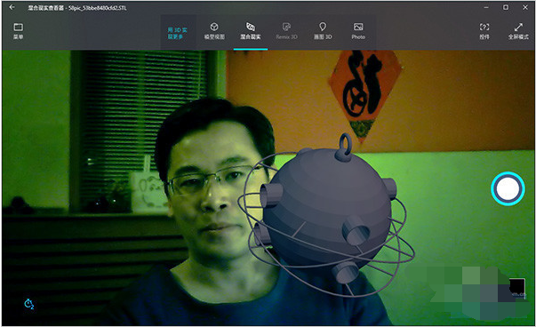 具體方法是,啟動“混合現實查看器”導入3D模型,然后點擊“混合現實”標簽,這時系統會自動打開電腦攝像頭。片刻后,那些電影里才能有的場景,就神奇般出現在眼前了。