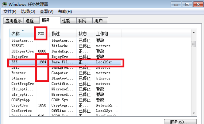 在服務(wù)欄找到相應(yīng)的程序,記住它的pid碼,比如我選擇的這個(gè)是1284,