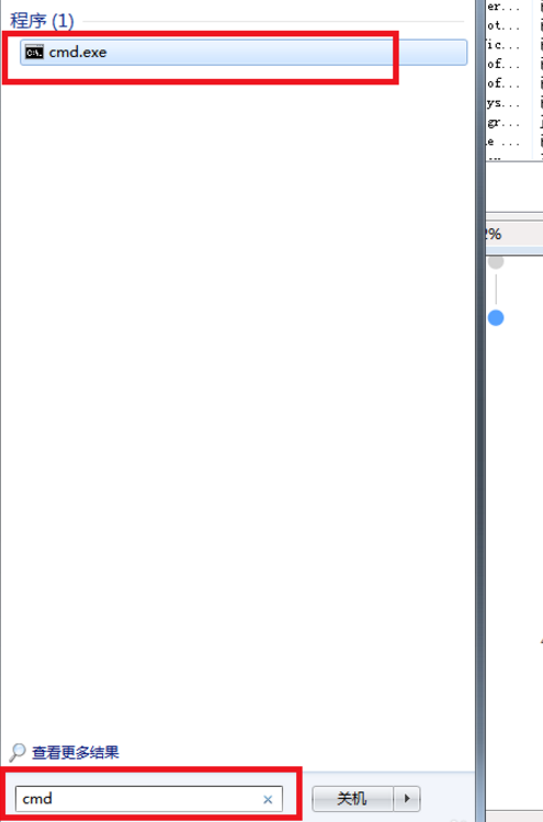 然后去開始-----在搜索框輸入cmd,回車,