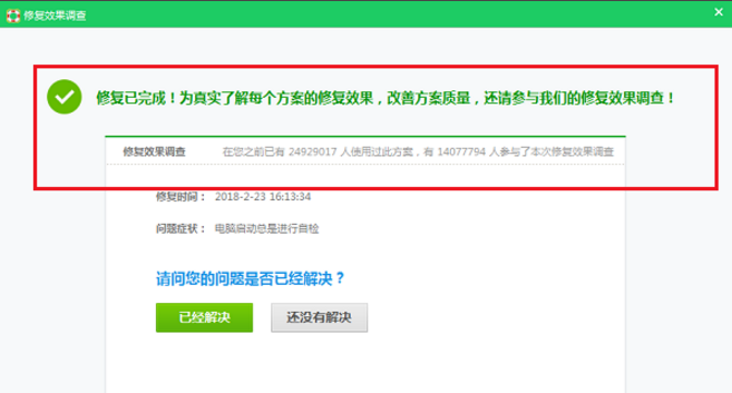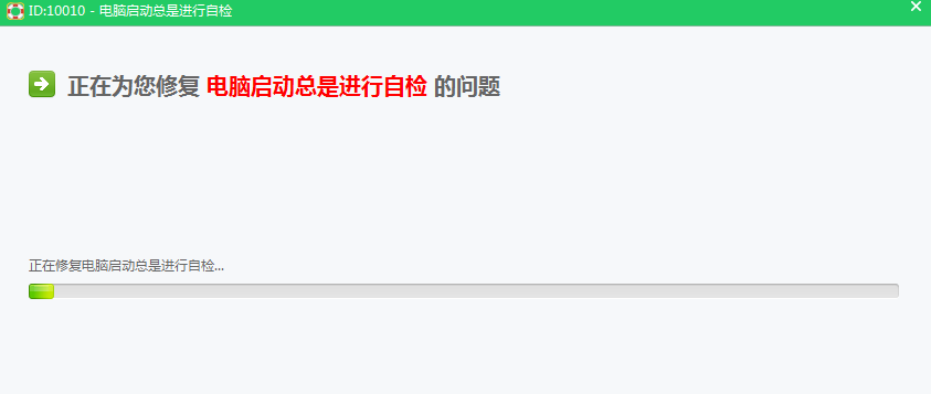 5、點擊立即修復(fù)之后,可以看到已經(jīng)在修復(fù)電腦啟動總是進行自檢的問題,如下圖所示: