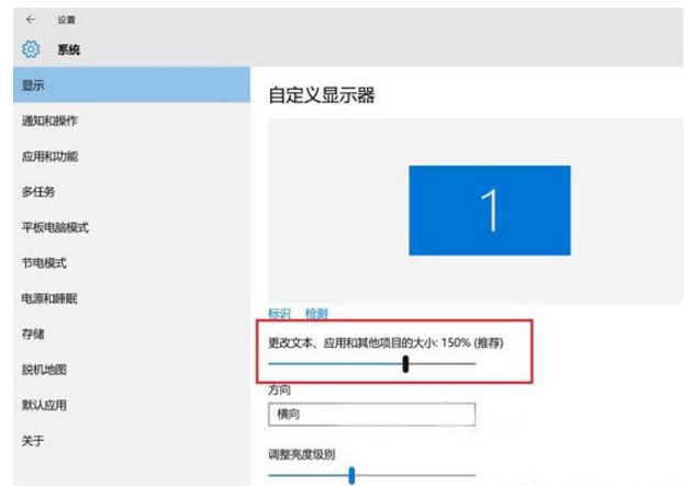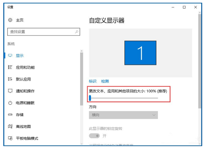 2、將“將更改文本、應用和其他項目的大小”由推薦的150%修改為100%;