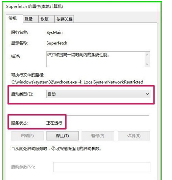 4、把superfetch的啟動類型更改為:自動,點擊啟動,使superfetch的服務狀態為:正在運行,再點擊:應用 - 確定,退出本地服務;