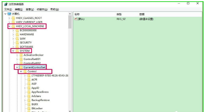 7、在注冊表編輯器中,我們依次展開HKEY_LOCAL_MACHINE/SYSTEM/CurrentControlSet/Control;