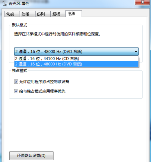 6、點擊高級,變成dvd模式,錄音效果最佳,然后點擊應用,確定即可,