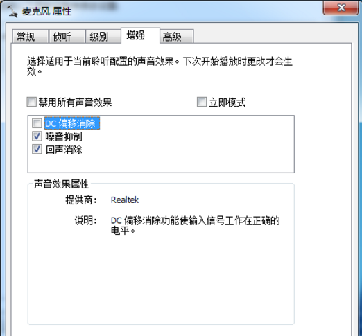 5、點擊增強,將噪音抑制,回聲消除都打√,