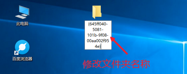 然后修改文件夾名稱,輸入回收站.{645ff040-5081-101b-9f08-00aa002f954e},然后在空白處點擊一下,可以看到回收站找到了。