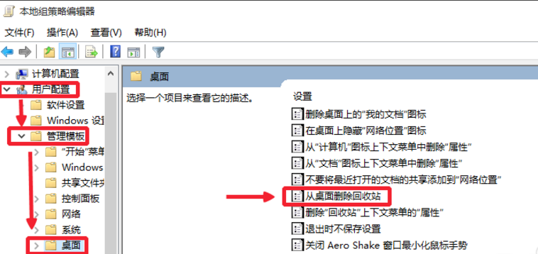 然后這里我們依次如圖所示點擊打開從桌面刪除回收站,雙擊打開。這樣可以防止某些人由于隱藏了桌面回收站圖標導致的回收站不顯示圖標。