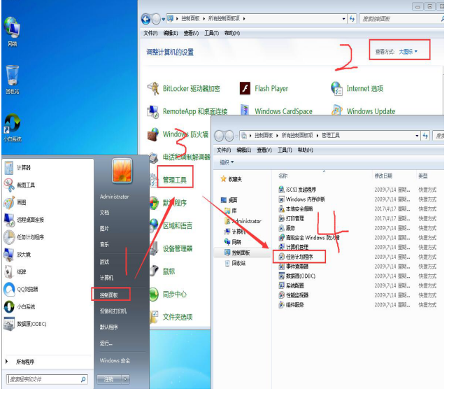 2、依次打開控制面板——管理工具——任務計劃程序。
