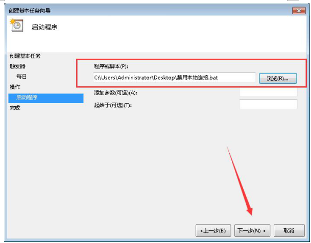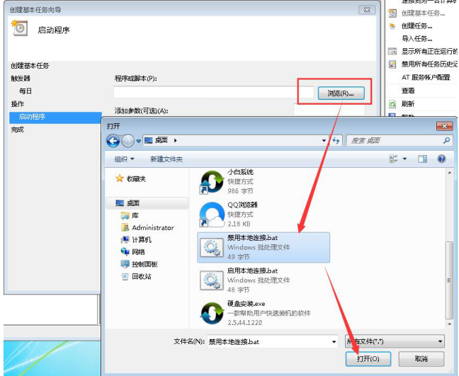 7、點擊瀏覽找到前面編輯好的.bat文件,點擊選擇這個文件。
