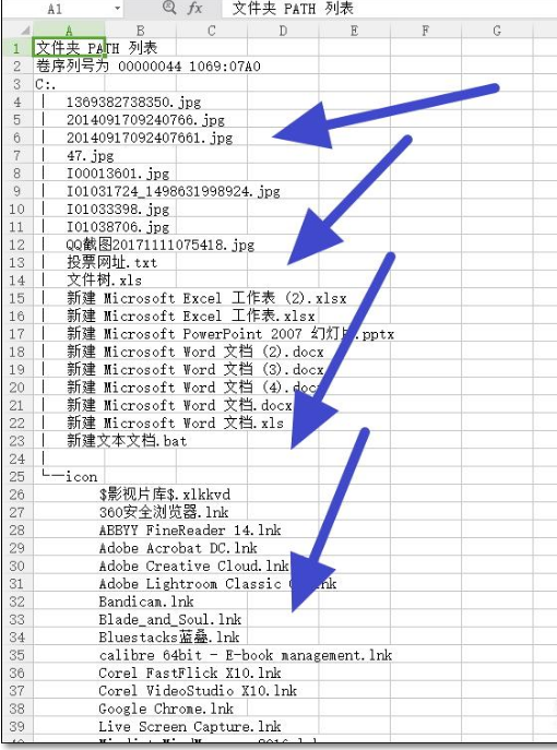 9、打開得到的表格文件,就可以看到文件夾中所有內容的名字了,特別的方便快捷!