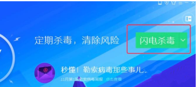 6、打開殺毒頁面后,點擊“閃電殺毒”。