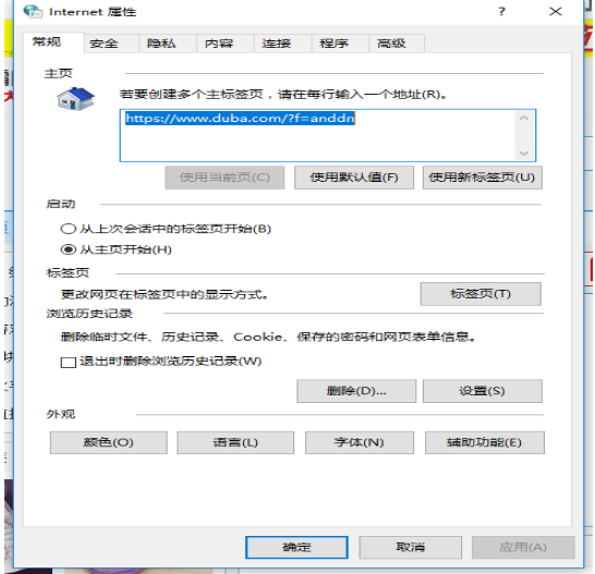 2、然后會(huì)彈出一個(gè)“internet屬性”對(duì)話框,