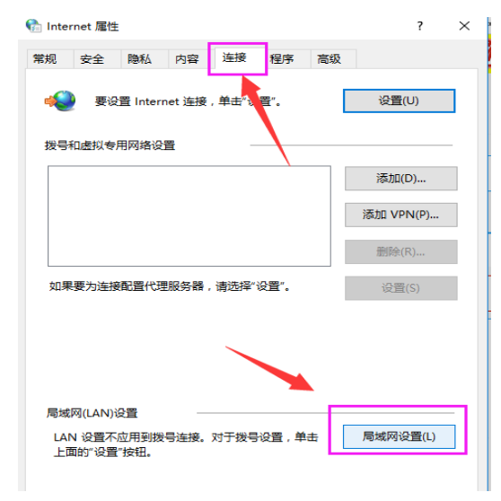3、點(diǎn)擊“連接”選項(xiàng)卡,并單擊底部的“局域網(wǎng)設(shè)置”按鈕,