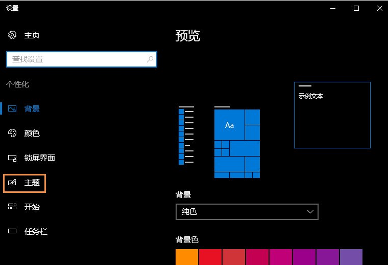 3、進入個性化界面,然后左側導航選擇“主題”。
