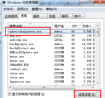 3、在打開的窗口中,選中要結(jié)束的進(jìn)程,點(diǎn)擊“結(jié)束進(jìn)程”按鈕。