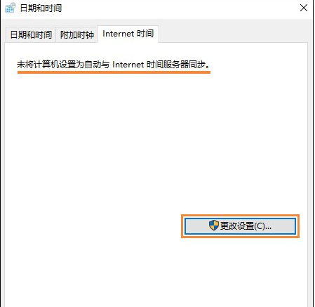 4、切換選項卡到“Internet時間”項目,可以看到時間沒有同步的提示,我們點擊“更改設置”;