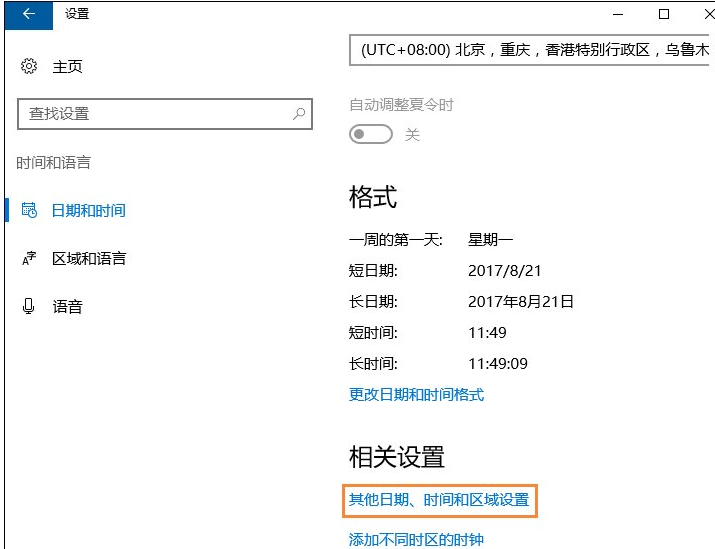 2、在右側將滾動條拉到最下面,點擊“其他日期、時間和區域設置”;