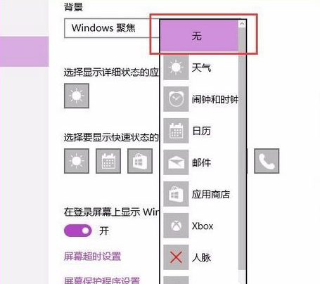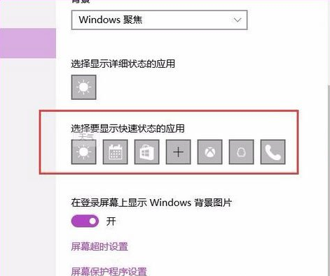 10、除了設置顯示詳細狀態的應用,我們還需要設置顯示快速狀態信息的應用,按照同樣的辦法,點擊頁面中的“+”按鈕,在應用列表中選擇需要展示的應用并點擊即可,如果想要取消其中某項應用的展示,在應用列表中選擇“無”菜單選項即可。