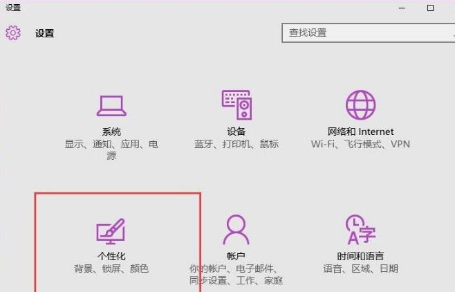 2、在Windows10系統的設置頁面中,我們點擊選擇“個性化”選項,點擊進入Windows10系統中的個性化設置頁面。