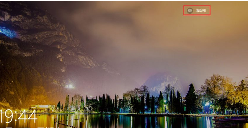 6、最后,請大家在桌面上按下Windows徽標鍵+L鍵,打開屏幕鎖定頁面,在屏幕鎖定頁面中,我們可以看到當前已經顯示了壁紙啦,同時頁面左上角會顯示“喜歡嗎”的信息提示。