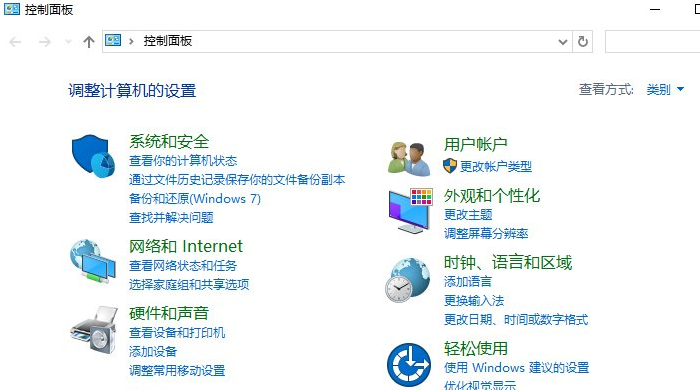 2、點(diǎn)擊“控制面板”選項(xiàng)后,這個時候系統(tǒng)會打開的“控制面板”對話窗口。如圖所示: