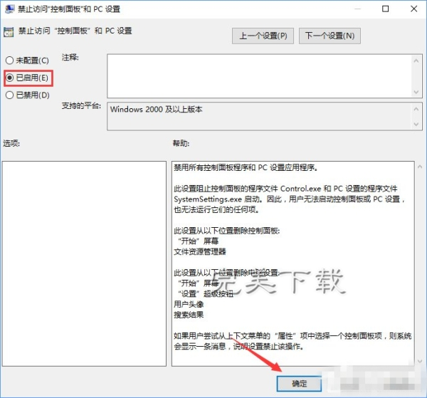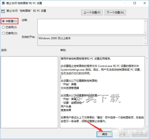 1、如果你是使用組策略編輯器來禁用設(shè)置和控制面板的,要恢復(fù)原樣,你需要進(jìn)入組策略編輯器,來到以下目錄:用戶配置-管理模板-控制面板,在窗口的右側(cè)重新找到禁止訪問“控制面板”和PC設(shè)置,雙擊它,然后在彈出的窗口中將已啟用改回未配置,點(diǎn)擊確定按鈕。