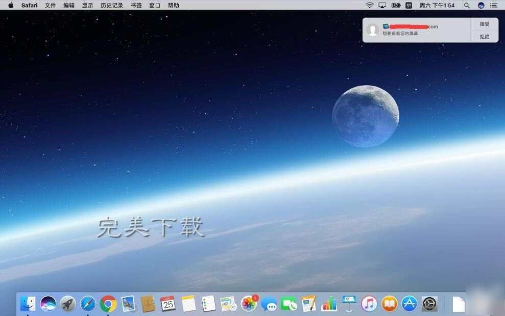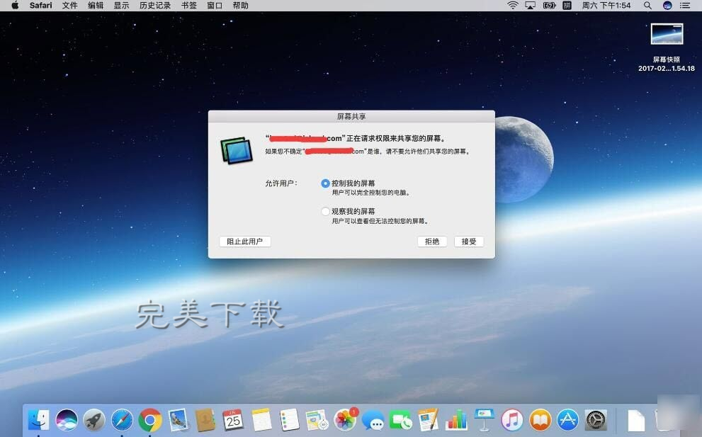 4、當連接成功以后,在對方的Mac上會彈出屏幕共享的選項,當對方選擇“允許控制我的電腦”以后,就可以遠程操控了。