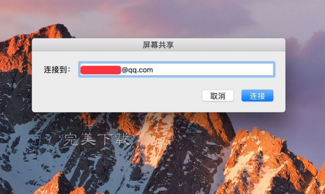2、Mac的遠程控制是通過Apple ID來連接的。因此我們需要在屏幕共享框中輸入你想要遠程控制的Mac電腦上登錄的 Apple ID賬號。