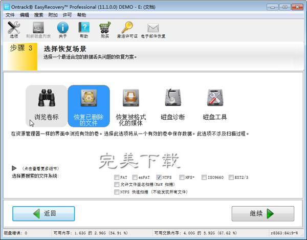 EasyRecovery是一款專業(yè)的數(shù)據(jù)恢復(fù)軟件,簡單的五個(gè)步驟即可實(shí)現(xiàn)恢復(fù),在經(jīng)過選擇媒體類型、選擇需要掃描的卷標(biāo)、選擇恢復(fù)場景、檢查您的選項(xiàng)之后,軟件就會(huì)自動(dòng)掃描并將結(jié)果顯示在軟件中。