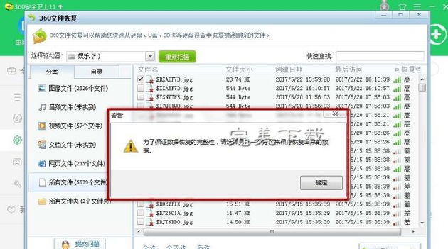 注意:為了保證數據恢復的完整性,一定要選擇另外一個分區來保存