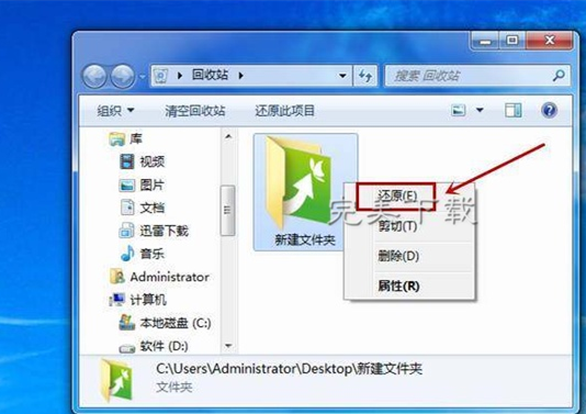 如果你還沒有進行回收站清空操作,馬上去回收站找到相應文件,然后右鍵選擇“還原”就可以啦