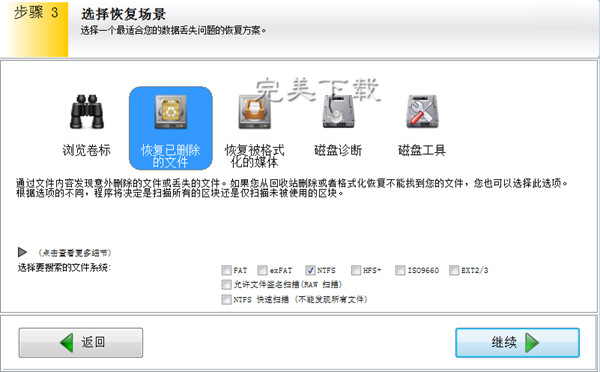 步驟三:選擇最適合數(shù)據(jù)丟失問(wèn)題恢復(fù)方案——恢復(fù)刪除文件 (刪除文件恢復(fù)大師下載地址:http://m.survivalescaperooms.com/heji/shanchuwenjianhuifudashi/)