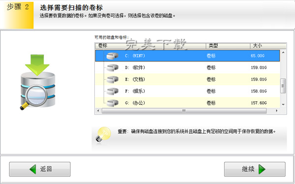 步驟四:檢查選項(xiàng),點(diǎn)擊“繼續(xù)”,進(jìn)入到掃描界面