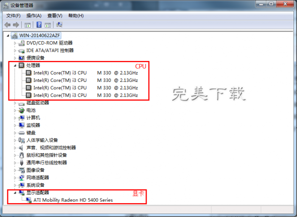 3、選擇設備管理器界面中的“處理器”和“顯示適配器”可以查看詳細的CPU信息和顯卡信息;