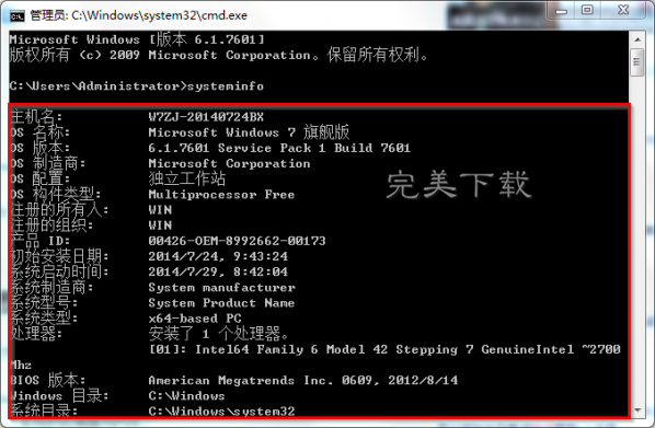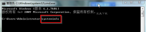 2、在出現的cmd命令提示符界面中輸入systeminfo→并按下回車。