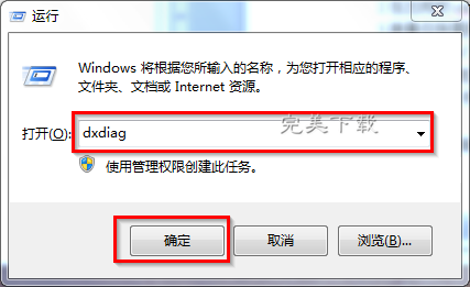 1、同時按下鍵盤上的windows鍵+R鍵,在出現的運行窗口中輸入“dxdiag”→點擊“確定”。