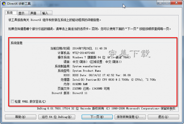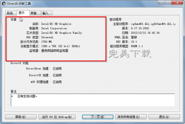 方法三:win7/win10系統DirectX診斷工具