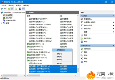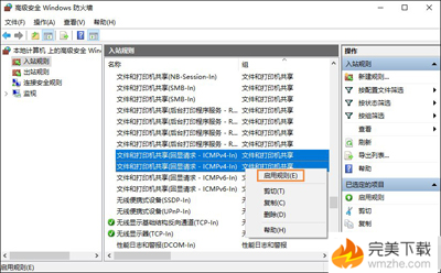 2、搜索高級安全Windows防火墻 -》入站規(guī)則-》文件和打印共享(回顯請求-ICMPv4-In)右鍵啟用規(guī)則-》尋找?guī)В私飧鄔in10相關資訊,訪問VeVb.com)遠程桌面字樣的規(guī)則將其全部啟用;